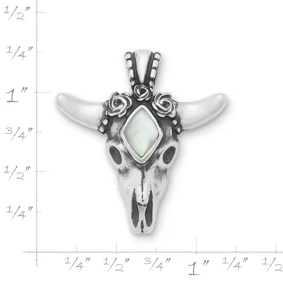 A reimagining of the Desert Rose Charm, this sterling silver pendant exudes both strength and beauty. Inspired by America’s Southwest, the buff top gemstne adds a dash of elegance while the sun-bleached skull and rose in full bloom symbolize the balance of masculine and feminine.