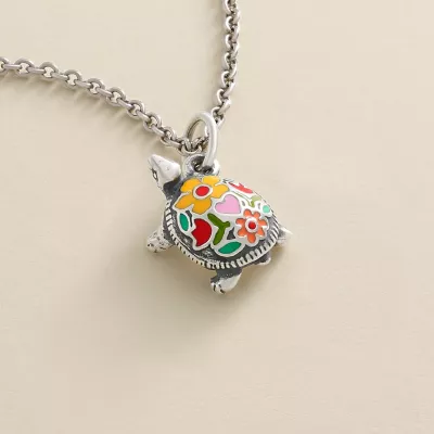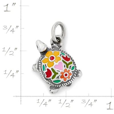Festive and colorful, this turtle charm features vibrant enameling on a floral-themed shell. Made from sterling silver, it’s engravable for added personality.