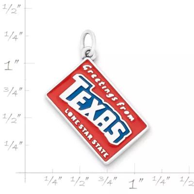 Inspired by vintage postcards from the ’40s and ’50s, this engravable sterling silver charm puts your love for the Lone Star State on full display. The front features a color scheme reminiscent of beautiful Hill Country sunsets, while the back includes nostalgic details like a heart for a stamp.