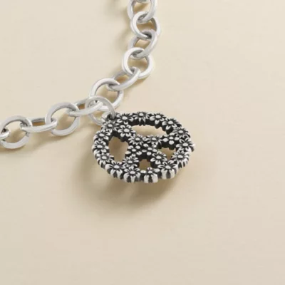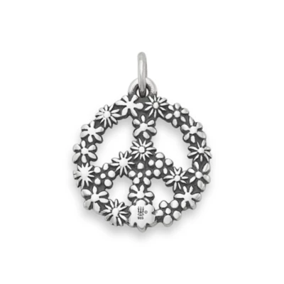 A nature-inspired take on the classic symbol for peace and love, this beautiful sterling silver charm is entirely covered in flowers and references back to many of the other floral designs in our line. It adds a bit of hopeful optimism to any bracelet or charm necklace, whether worn during the springtime or any other season of the year.