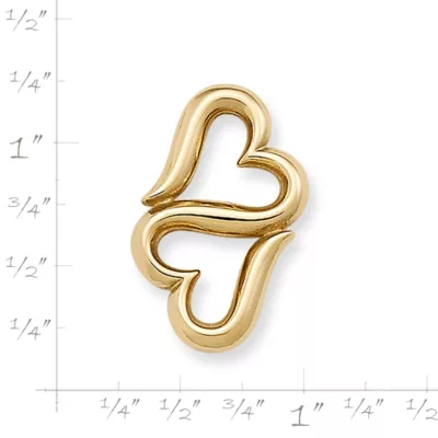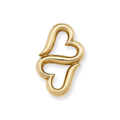 A continuous flowing line unites two hearts together for the creation of a cohesive design. Each heart has a beginning but no end, symbolizing the enduring quality of love.
