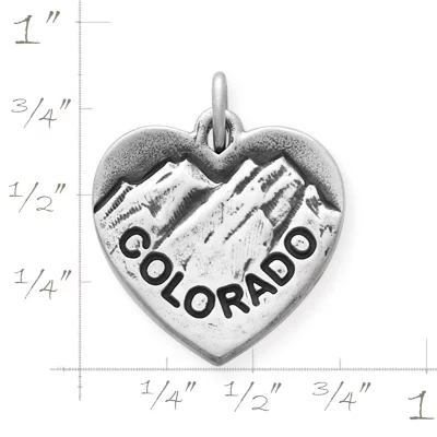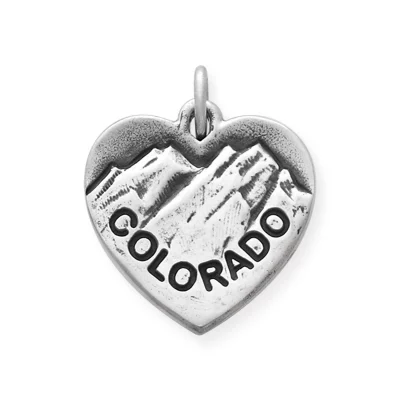 Express your love and pride for Colorado with a heart-shaped charm featuring the majestic Rocky Mountains.