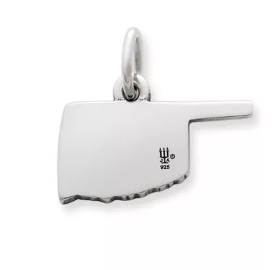 State pride is the cornerstone of this beautifully crafted sterling silver charm, with the outline of the state embracing an engraved heart at its center.