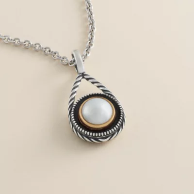 - Pendant set with a 10mm half-round cabochon cultured Pearl or enhanced Turquoise
