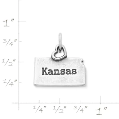 Express pride in your home state or remember a wonderful vacation with this Kansas charm. A flat surface on the back is perfect for engraving dates and other special memories. Topped with an open heart, this sterling style – which can be worn on a charm bracelet, charm necklace or chain – is a great way to capture the memories no matter where you wander.