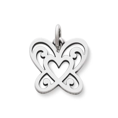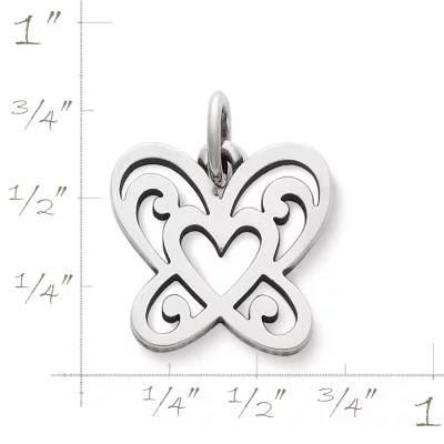 With a graceful and open work design, the simple symbols of a heart and butterfly are united to create a cohesive expression of love and life.