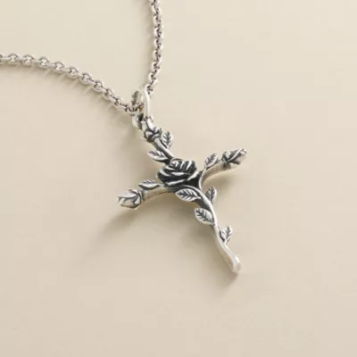 Bear with you an enduring depiction of faith in sterling silver or 14k gold with this beautifully crafted Rosebud Cross Pendant.