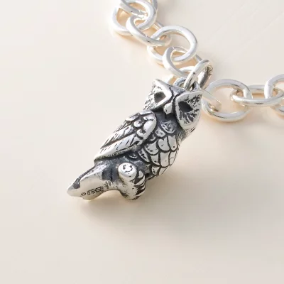 Perfect for nature lovers, night owls and those wise beyond their years. This wise owl in sterling silver can be worn as a necklace or added to your favorite charm bracelet.