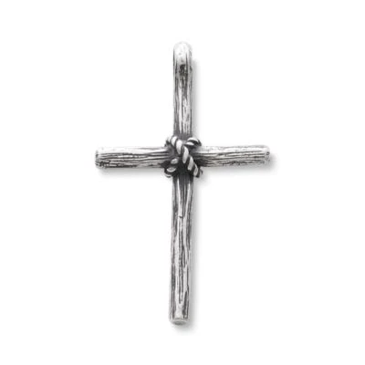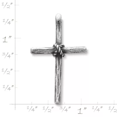 This cross has an enduring quality. The ropes binding the two arms of the cross become the symbol of the bonds freed in Christ’s sacrifice on the Cross. Available in sterling silver or gold.