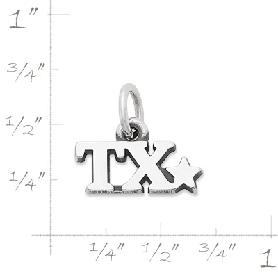 Add a little Texas love to your favorite bracelet, charm necklace or chain. This sterling silver “TX” Charm is punctuated with a small lone star and is full of Texas pride.