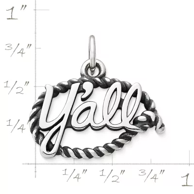 Hey, y’all! This Southern pronoun–framed in a sterling silver twisted wire lasso–makes a great addition to any charm bracelet or chain.