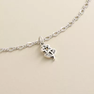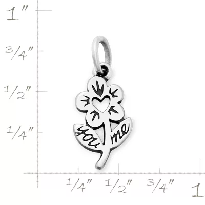 A sweet expression of love, connection and nature, this unique charm features “You” and “Me” etched on leaves below a flower with a heart in the center. Made from sterling silver, it’s sure to brighten your day with warm feelings of spring and summer.